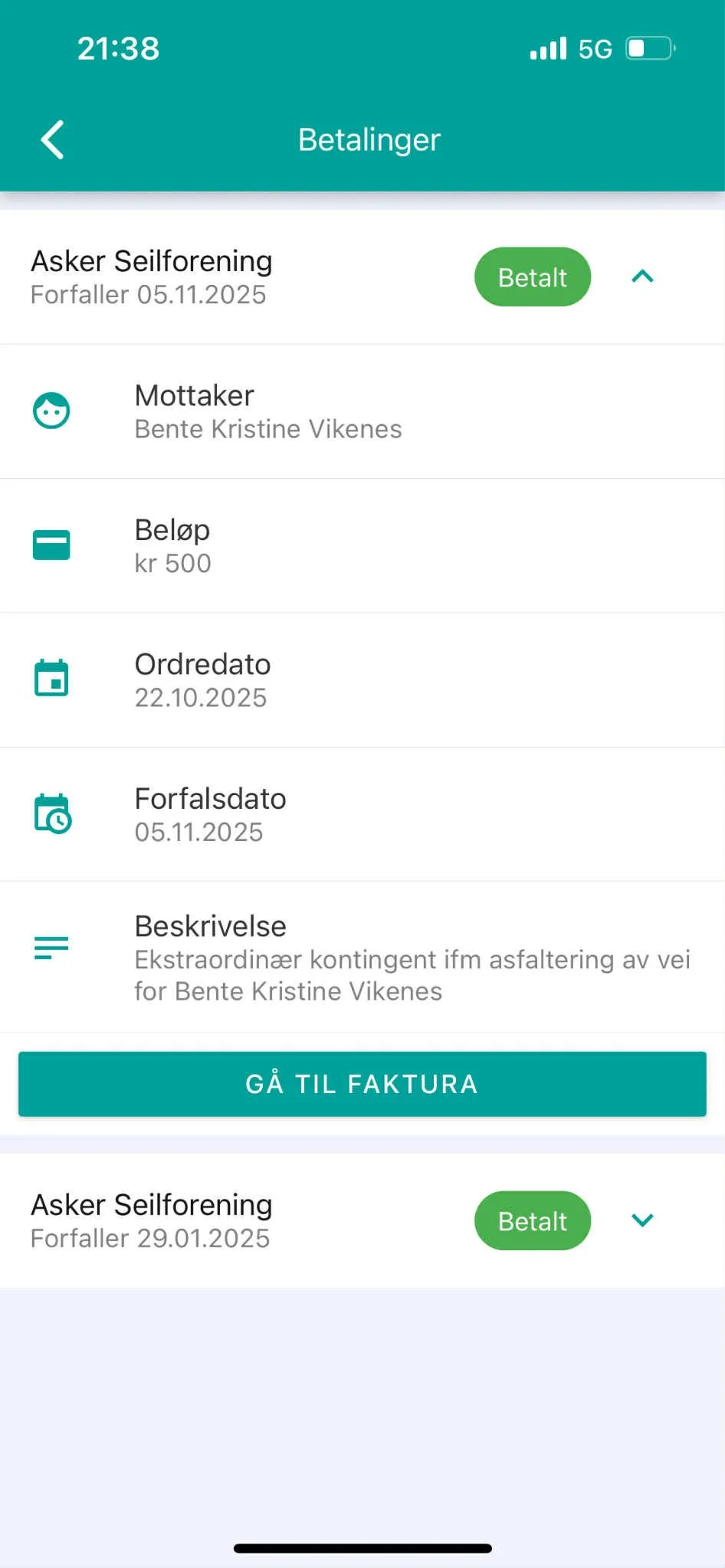 Ps! Har du problemer med innbetaling så ta kontakt med oss på post@askerseil.no