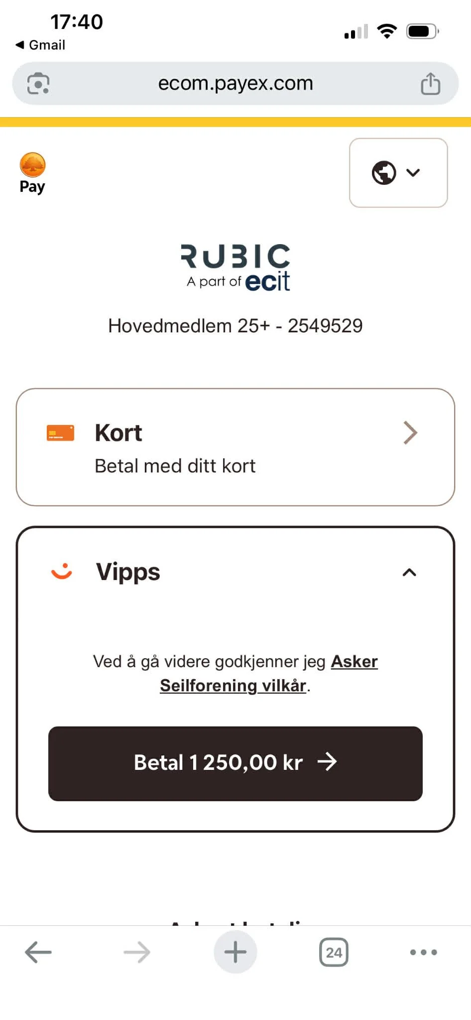 Rubic er koblet til Vipps, så du kan enkelt betale medlemskontingent og fremtidige aktiviteter direkte i appen med Vipps.